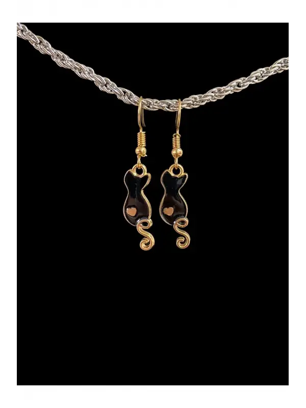 Antik Gümüş Kaplama Paslanmaz Çelik Kedi Figür Küpe