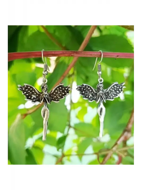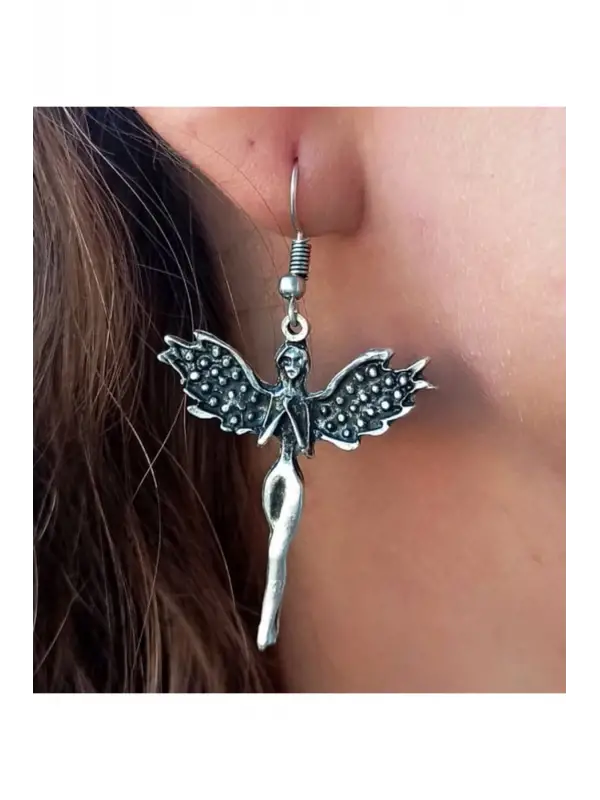 Antik Gümüş Kaplama Vintage Angel Küpe