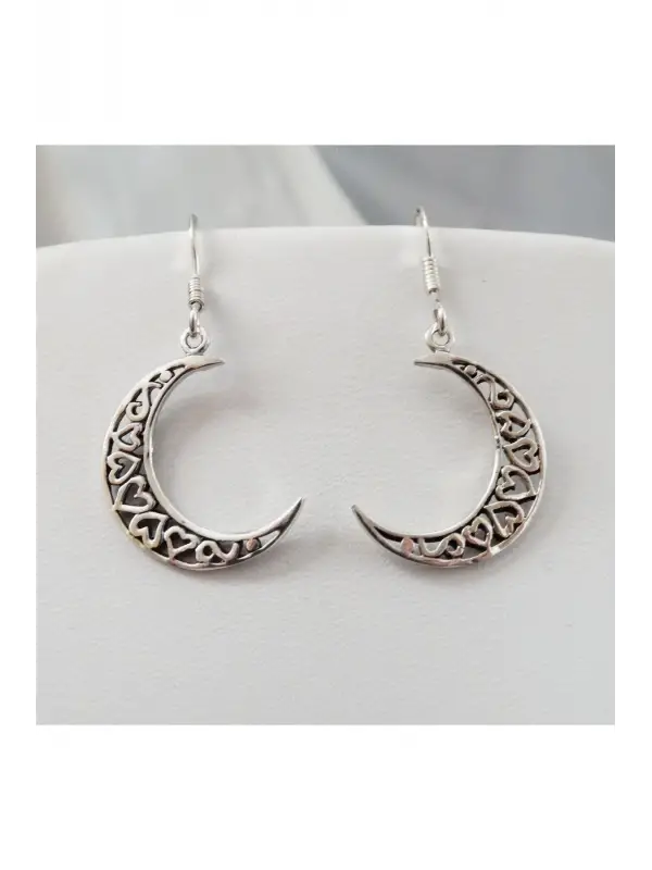 Antik Gümüş Kaplama Vintage Ay Hilal Küpe