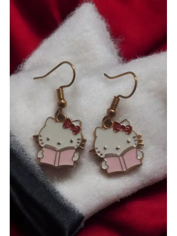 Antik Gümüş Kaplama Kadın Gotik Anime Hello Kity Küpe