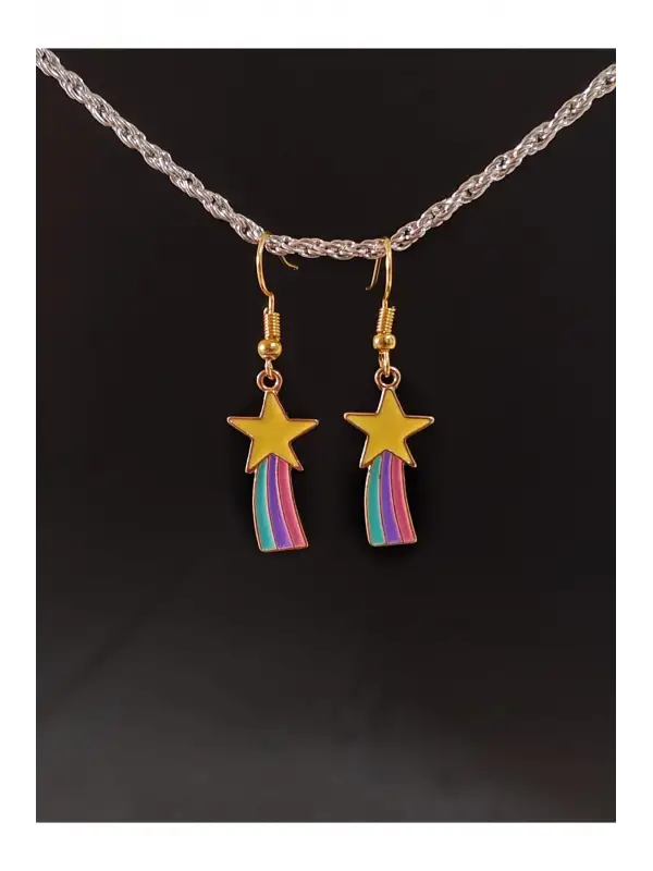 Vintage Star Yıldız Motif Gökkuşağı Sembol Küpe