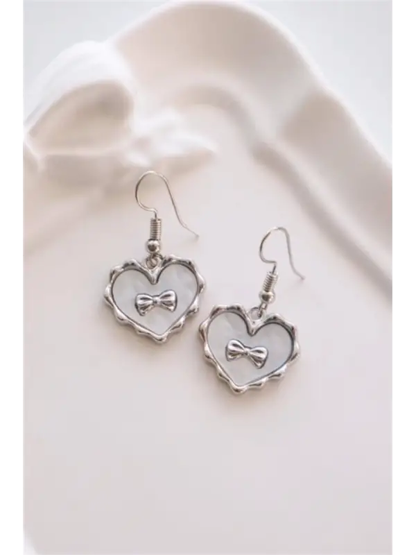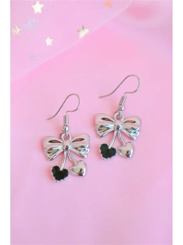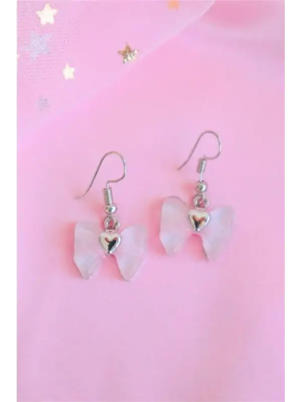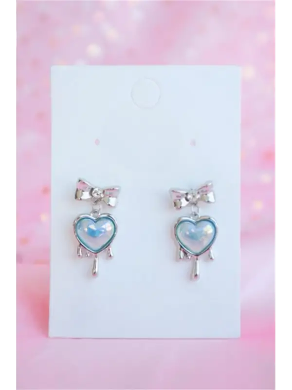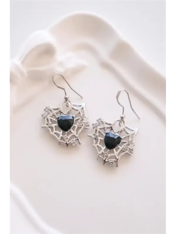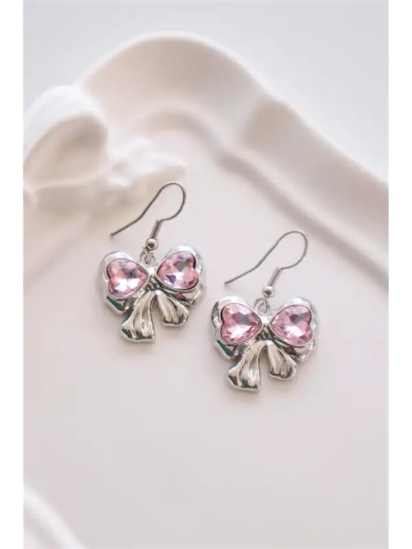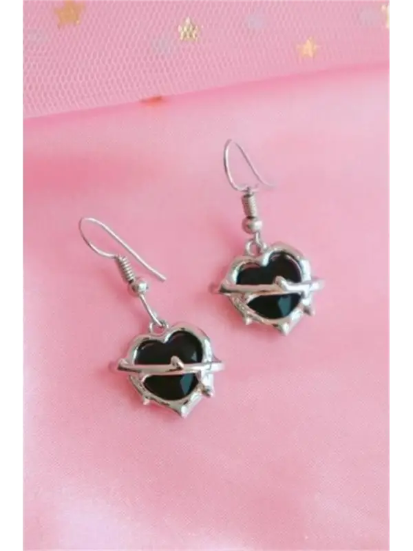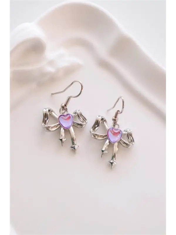 Mor Taşlı Kalp Fiyonk İthal Küpe