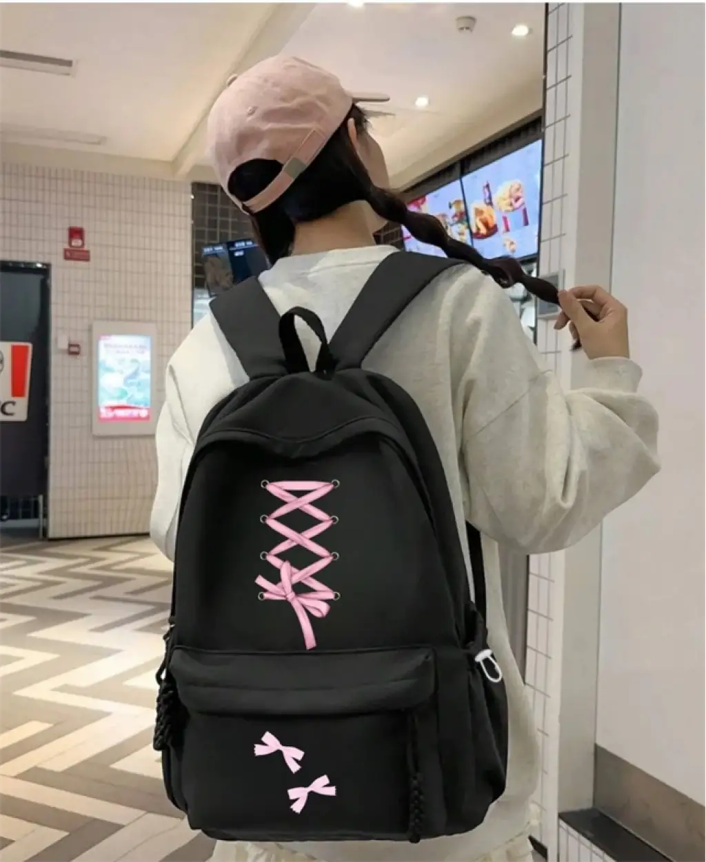 Kurdele Baskılı Renkli Unisex Okul Sırt Çantası