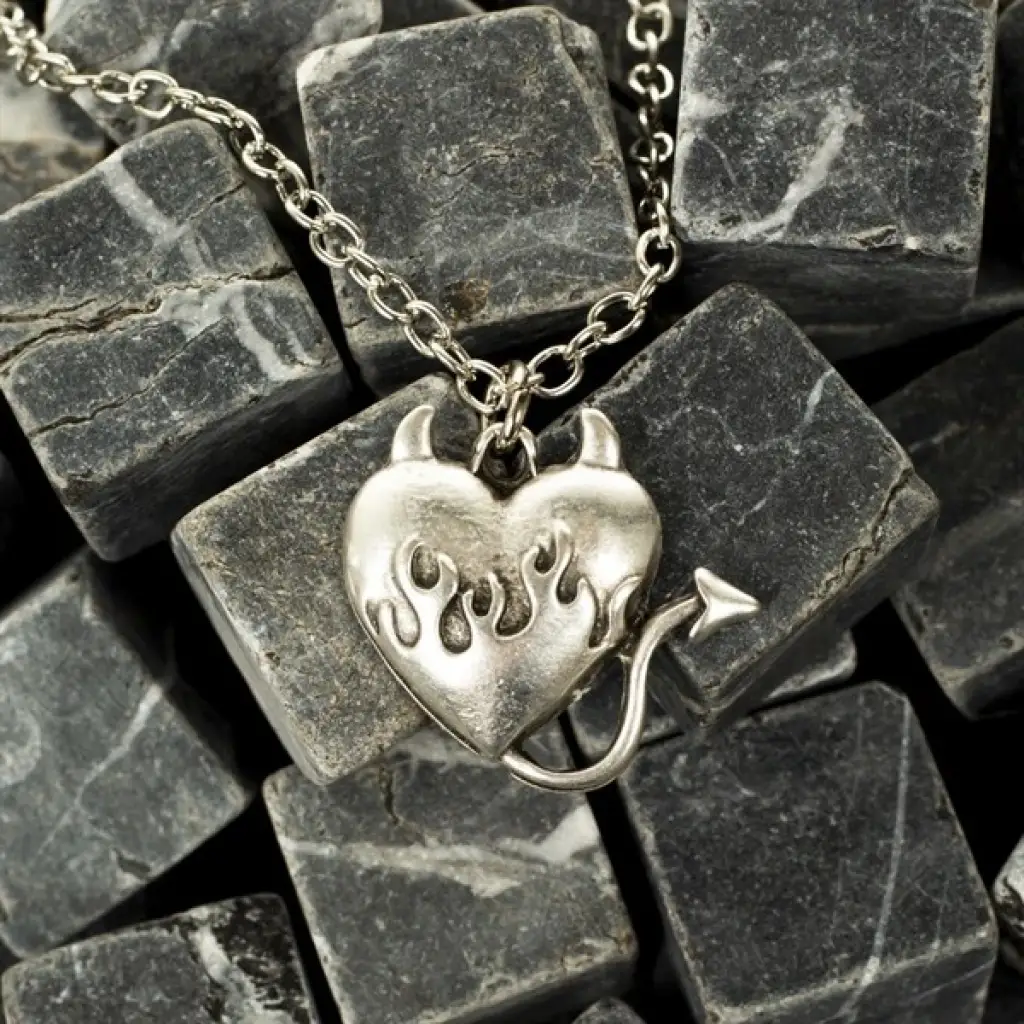 Gümüş Renk Zincirli Siyah Kalp Pençe İthal Kolye