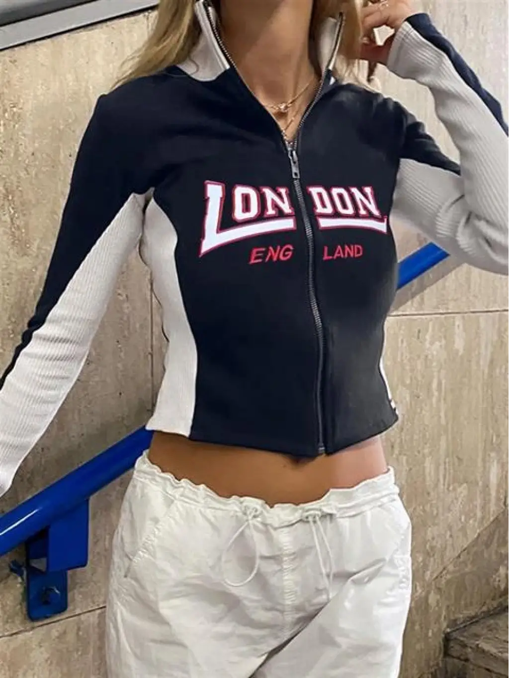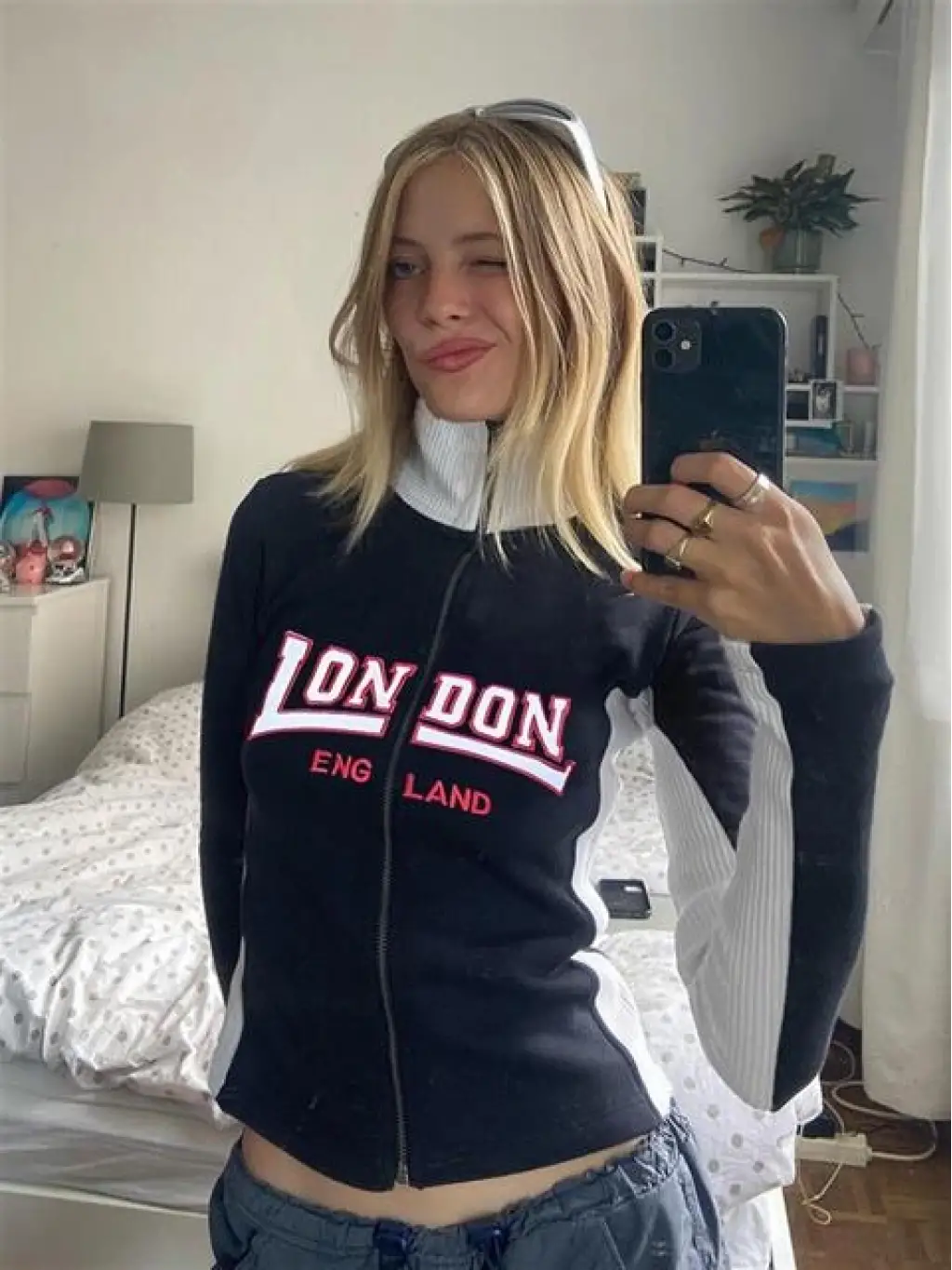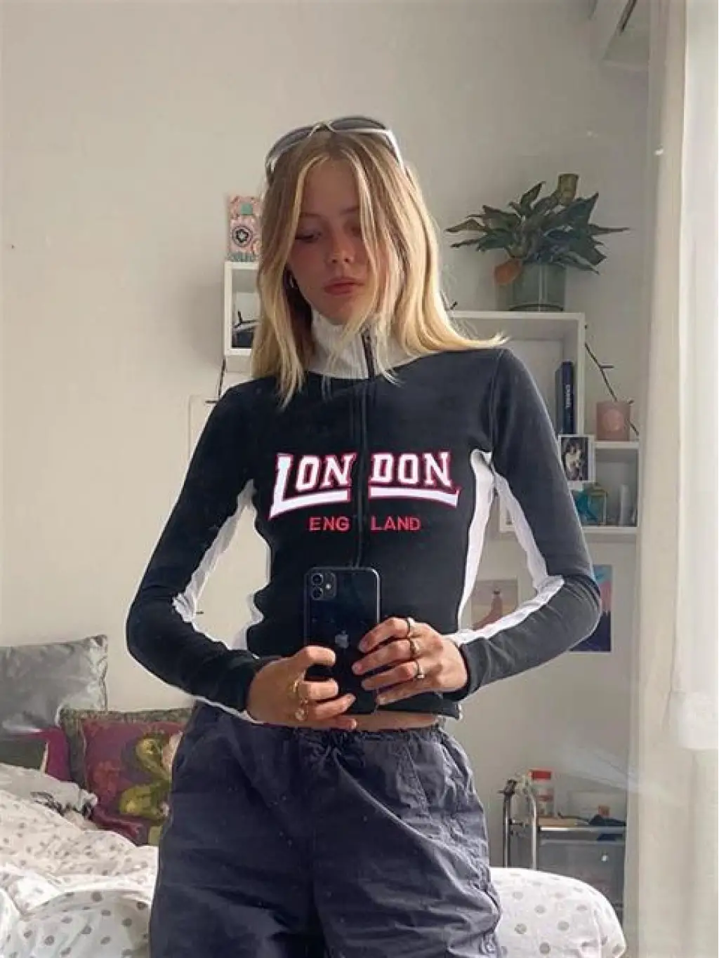 Touz Hype Girl Baskılı Fermuarlı Siyah Crop