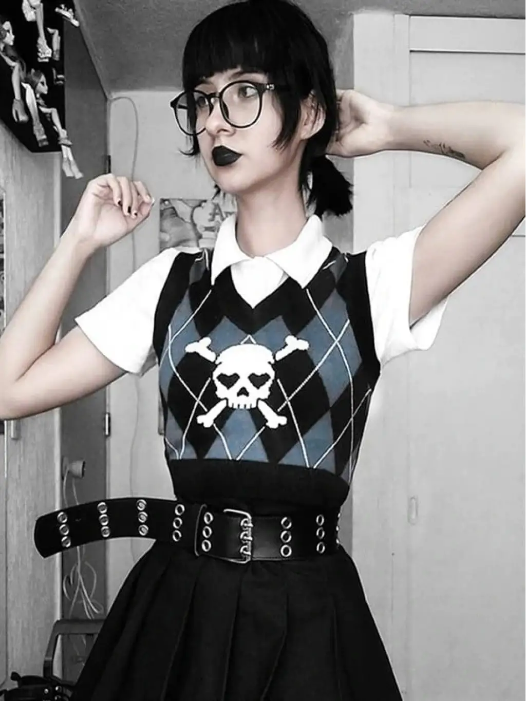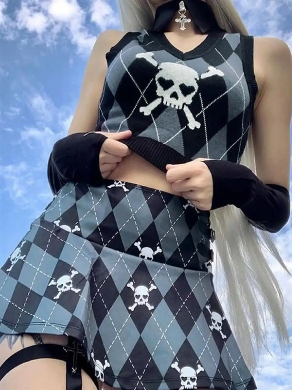 Siyah Gothic Show Xin Dou Yırtık Oversize Triko Kazak