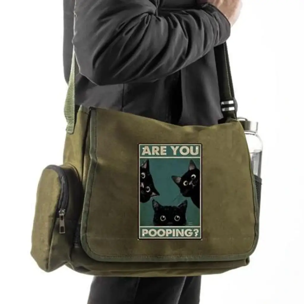 Meow Baskılı Unisex Yeşil Postacı Çantası