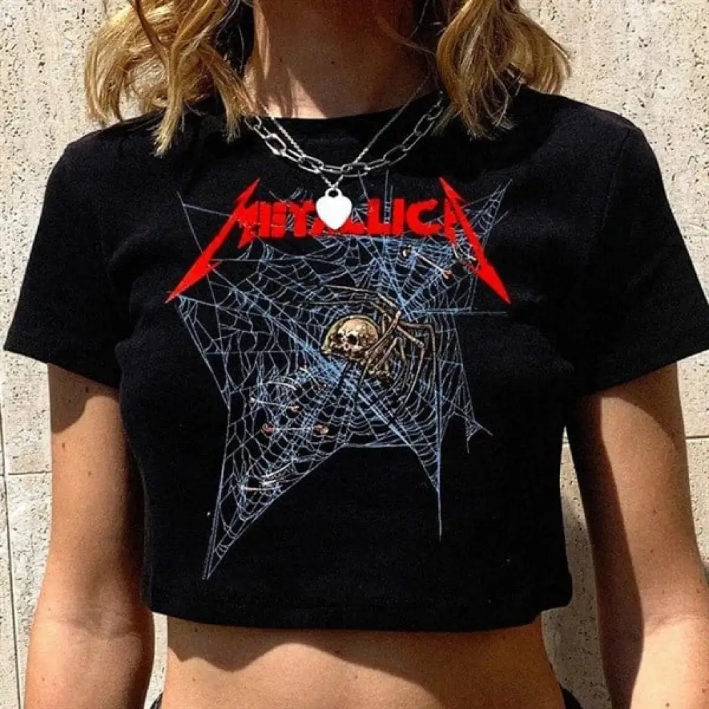 Gothic Heart Baskılı Şeritli Bluz Body Crop