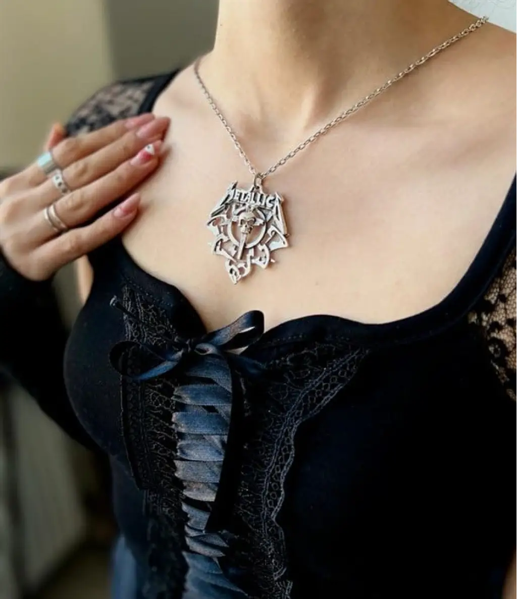 Gümüş Renk Zincirli Siyah Kalp Pençe İthal Kolye