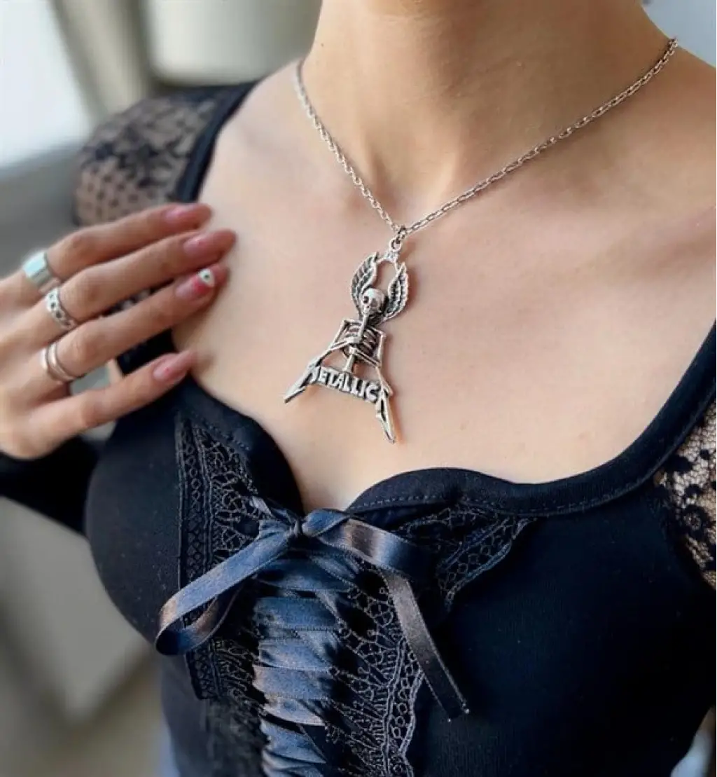 Gümüş Renk Zincirli Siyah Kalp Pençe İthal Kolye