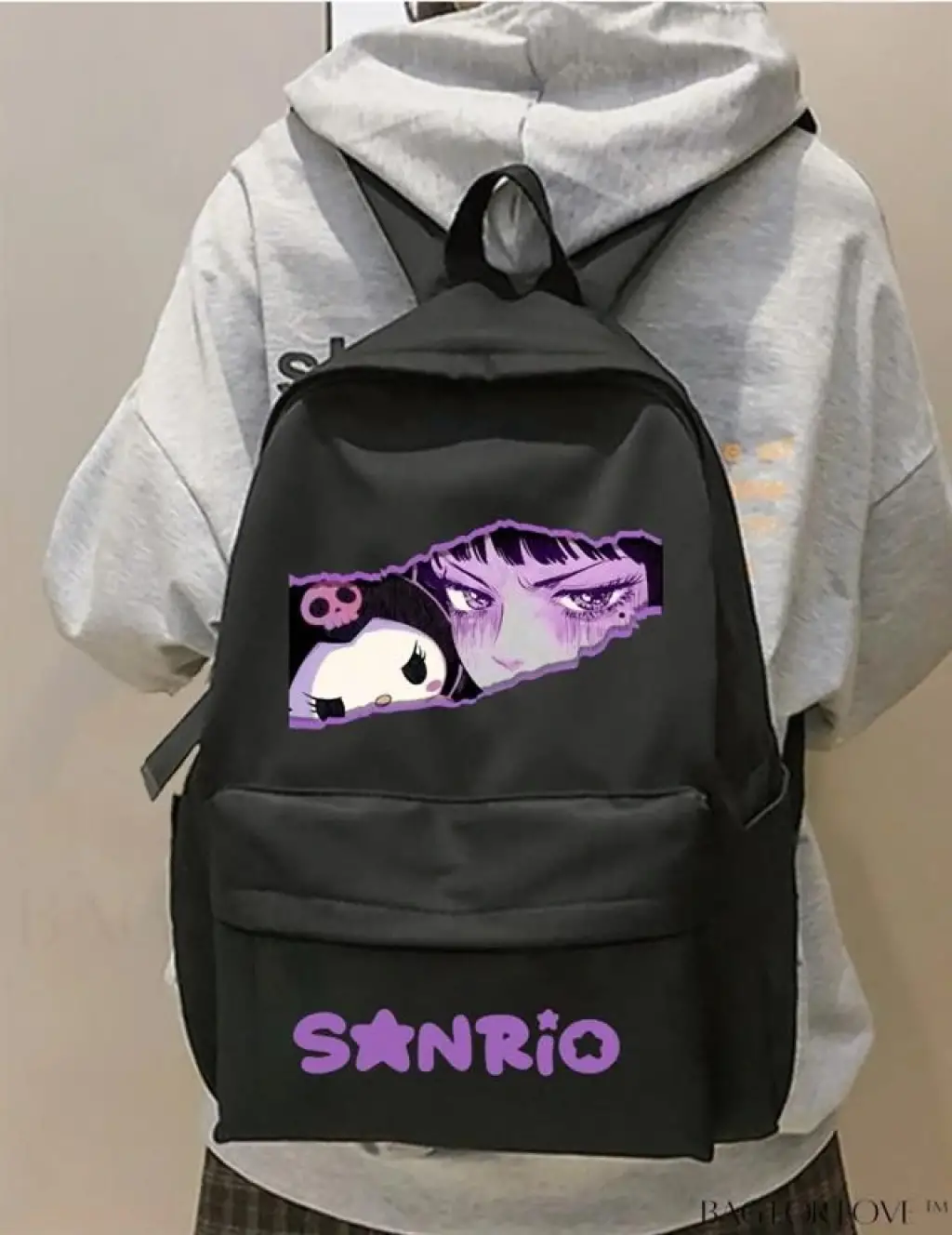 Mor Anime X Kuromi Sanrio Eyes Baskılı Okul, Dershane, Kurs Sırt Çantası