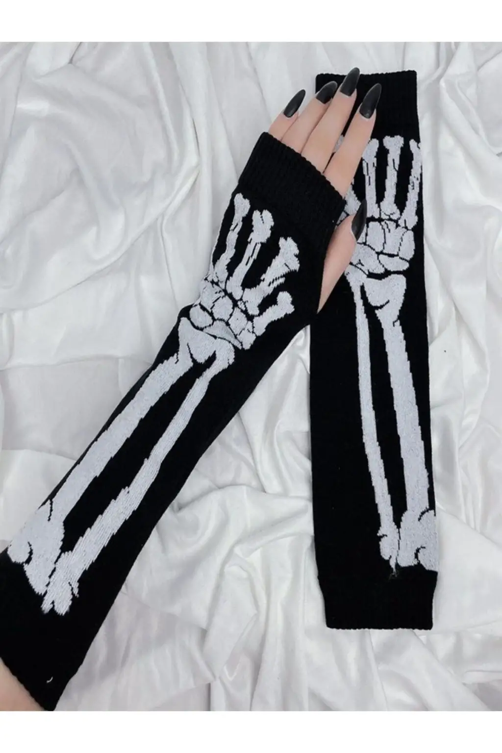 ESC BUTİK'in özel tasarımı olan Motif Pamuk Düz Siyah Kesik Parmak Iskelet Kolluk, hem şık görünümü hem de üstün koruma sağlayan yapısıyla dikkat çekiyor.