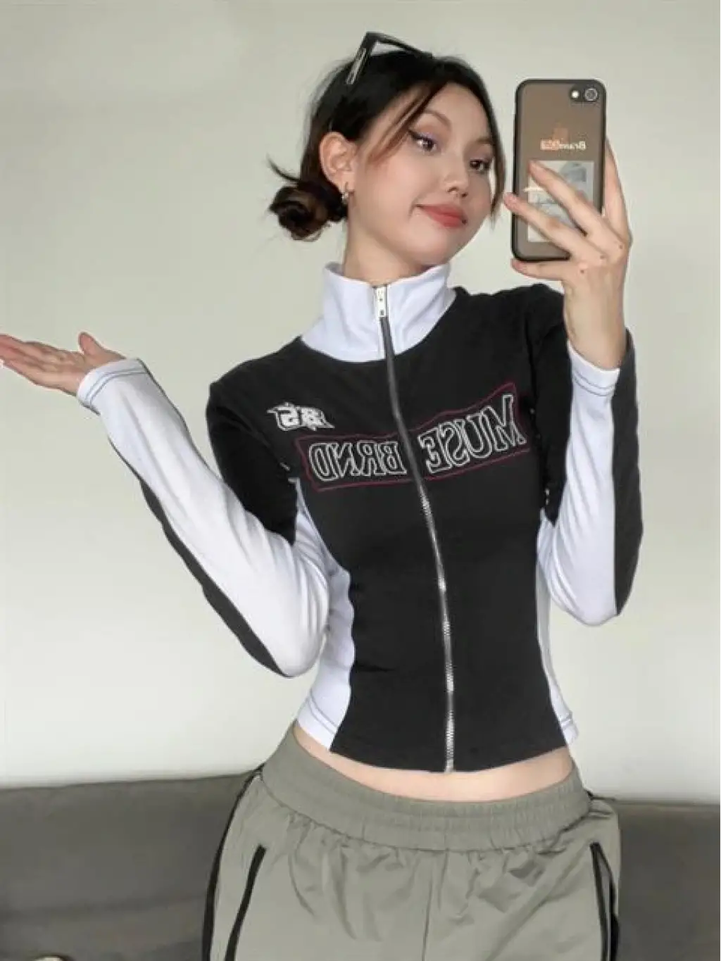 Muse Brnd Baskılı Fermuarlı Siyah Crop