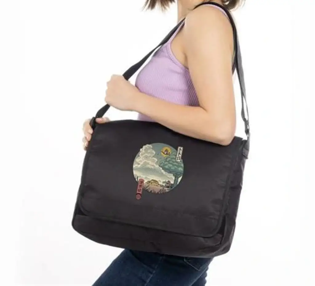 Neighbor's Ukiyo-e Baskılı Unisex Siyah Postacı Çantası