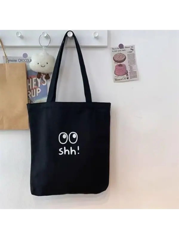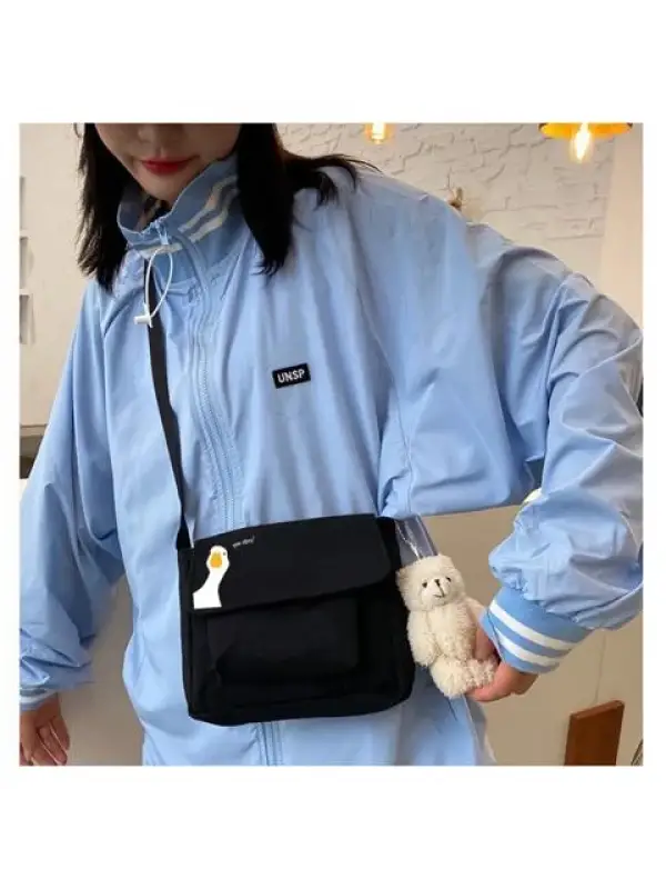 You Okay? Baskılı Cep Detaylı Unisex Kanvas Siyah Omuz Çantası