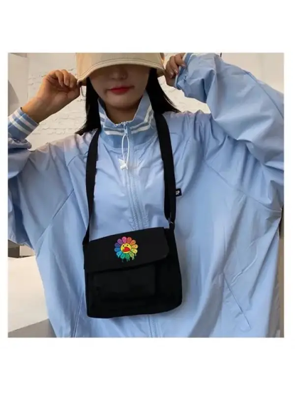 Boiling Flower Baskılı Cep Detaylı Unisex Kanvas Siyah Omuz Çantası