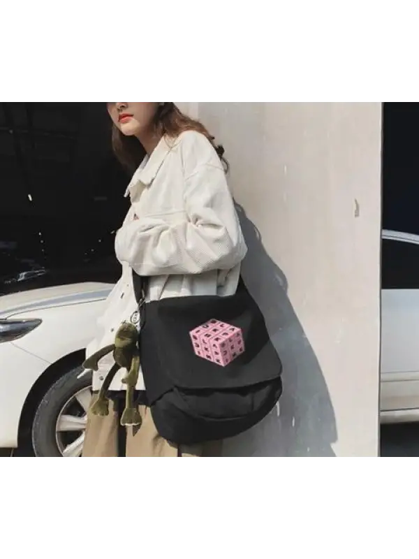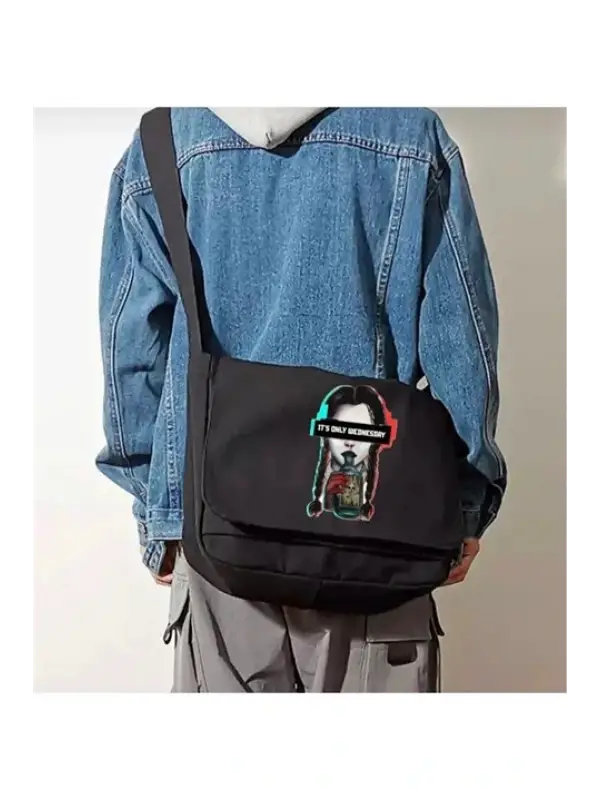 K-Pop Serisi Blackpink Cube Baskılı Unisex Siyah Postacı Çantası