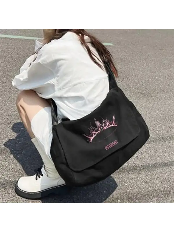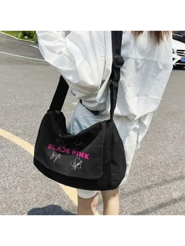 K-Pop Serisi Blackpink Album Cover Baskılı Unisex Siyah Postacı Çantası