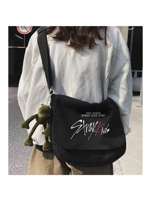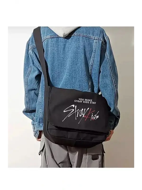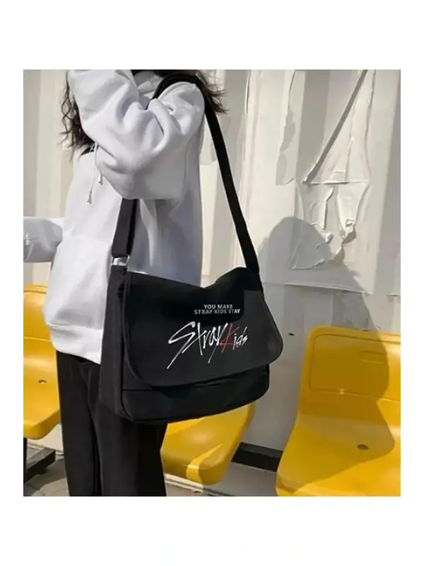 Kpop Serisi Stray Kids Baskılı Unisex Siyah Postacı Çantası