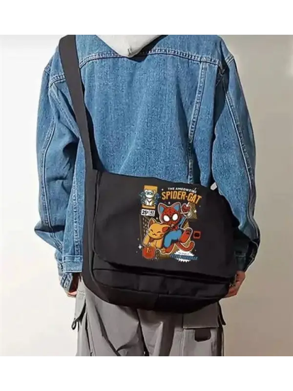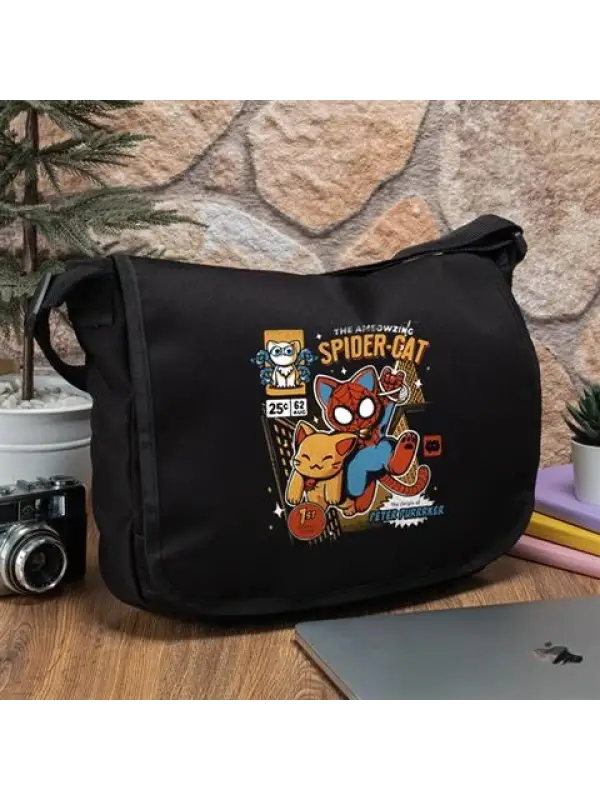 Spider-Cat Baskılı Unisex Postacı Çantası