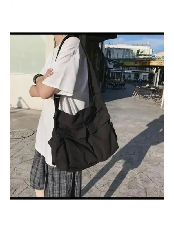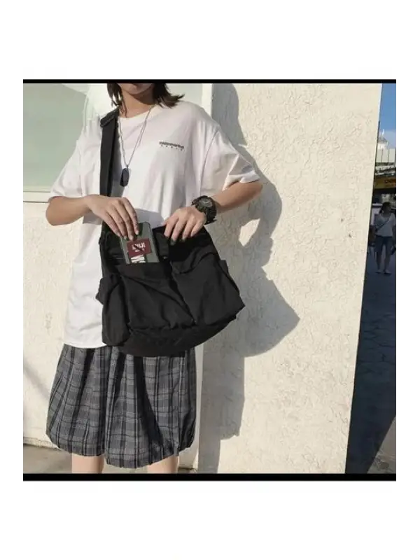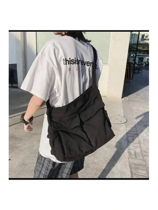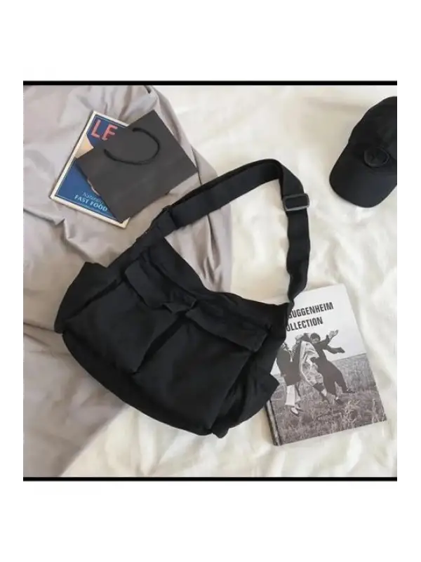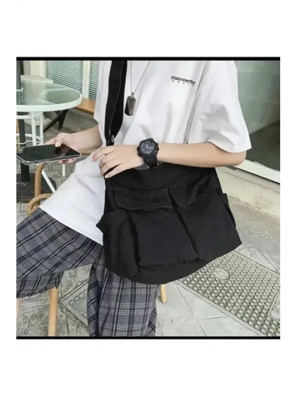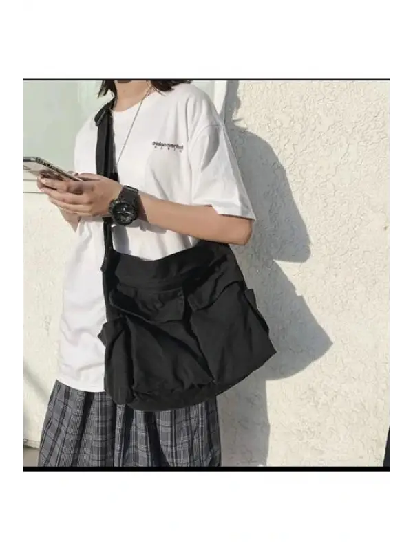 Vintage Unisex Kargo Cep İç Hacmi Geniş Siyah Postacı Çanta