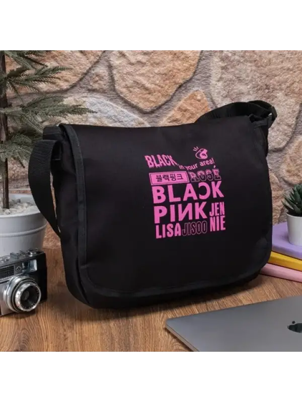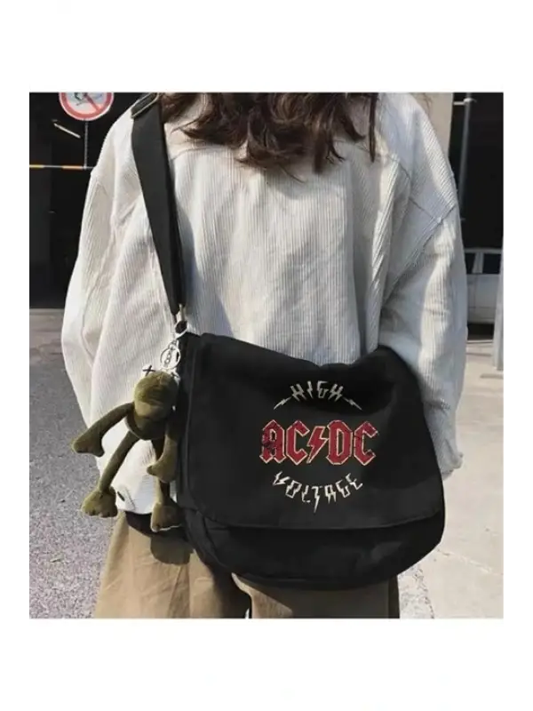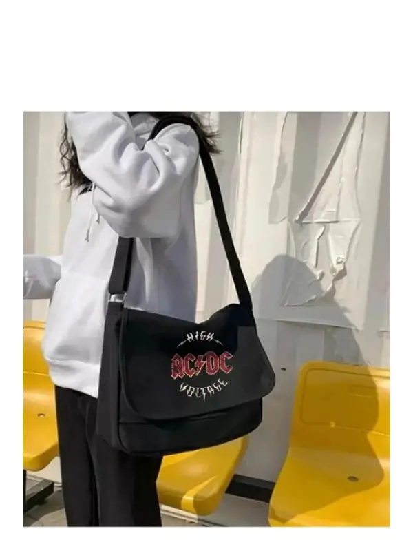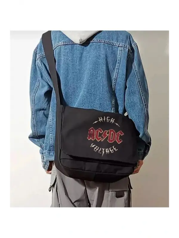 Rock Serisi AC/DC Baskılı Unisex Siyah Postacı Çantası