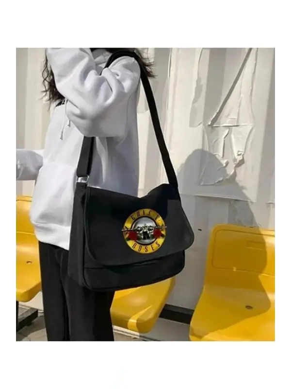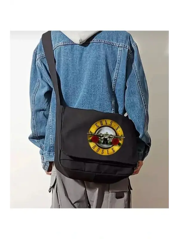 Rock Serisi Guns N' Roses Baskılı Unisex Siyah Postacı Çantası