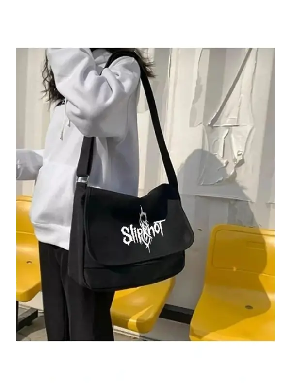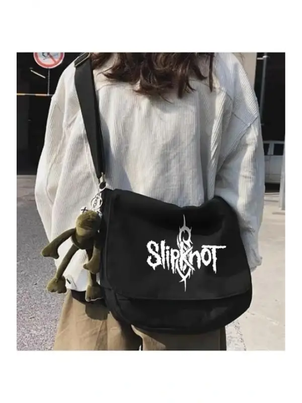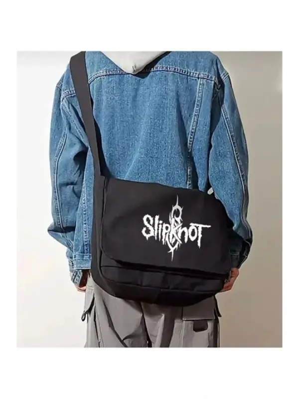Rock Serisi Slipknot Baskılı Unisex Siyah Postacı Çantası