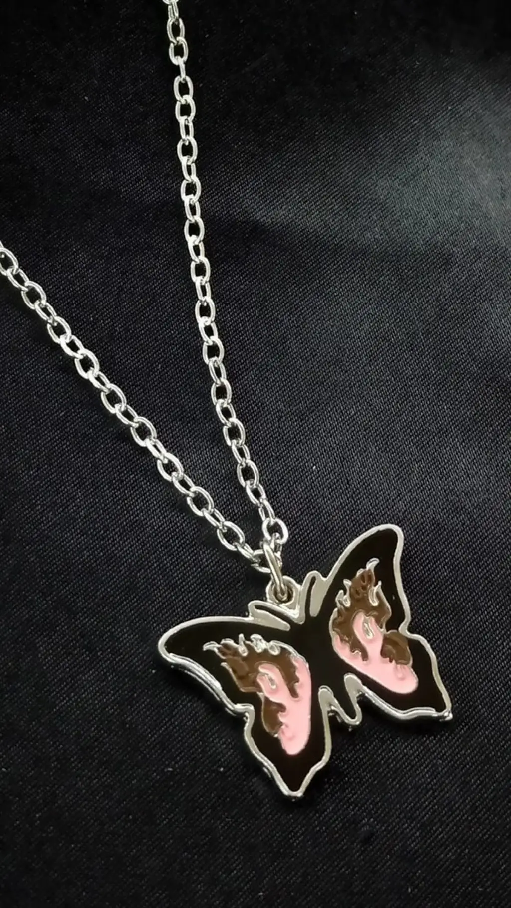 Gümüş Renk Zincirli Mor Taşlı Kelebek İthal Kolye