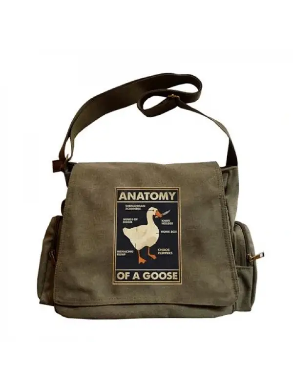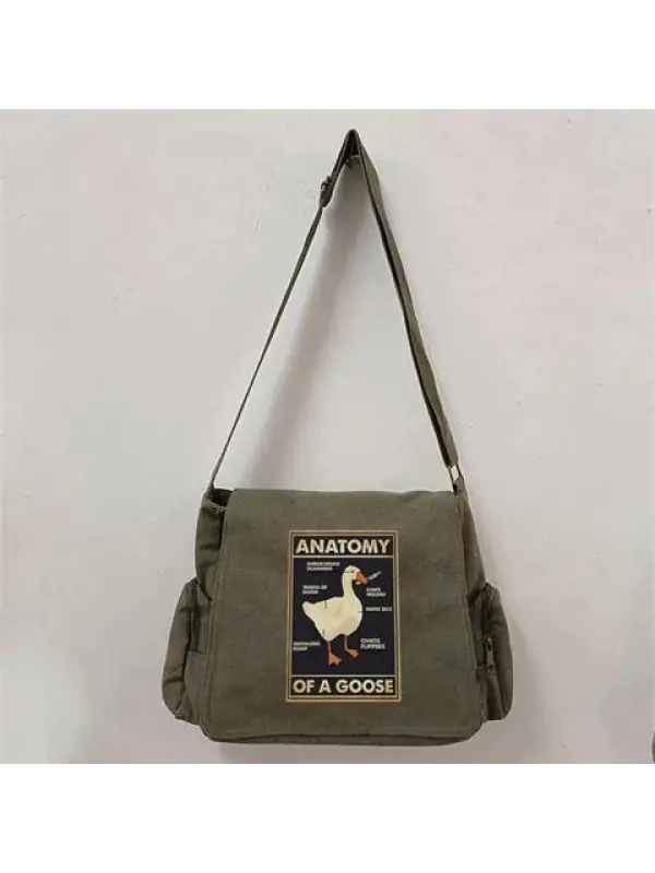 Duck Anatomy Baskılı Unisex Yeşil Postacı Çantası