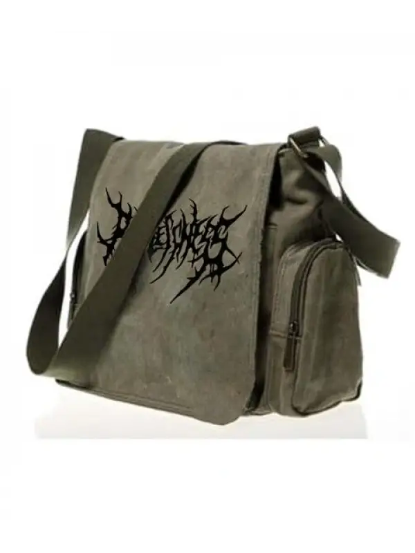 Gothic Punk Baskılı Unisex Yeşil Postacı Çantası
