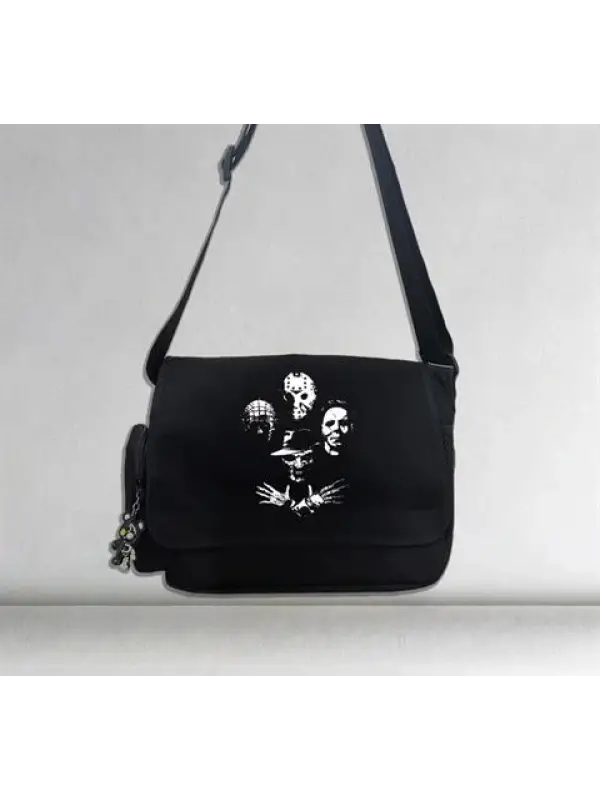 Halloween Bad Faces Baskılı Unisex Siyah Postacı Çantası