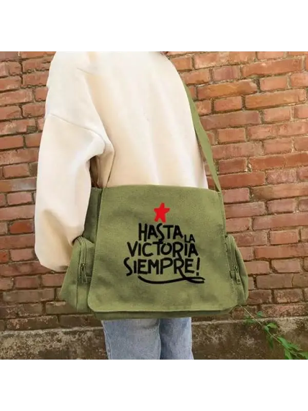 Hasta La Victoria Siempre Baskılı Unisex Yeşil Postacı Çantası