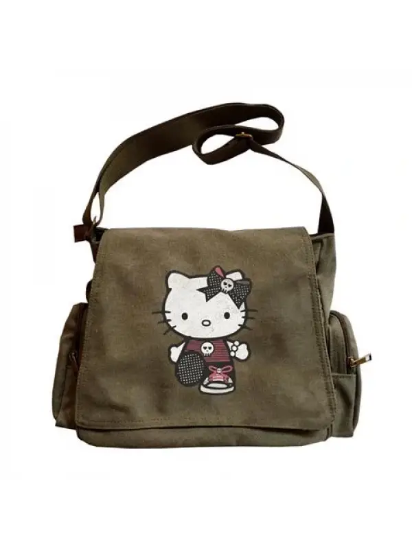 Hello Kitty Goth Baskılı Unisex Yeşil Postacı Çantası