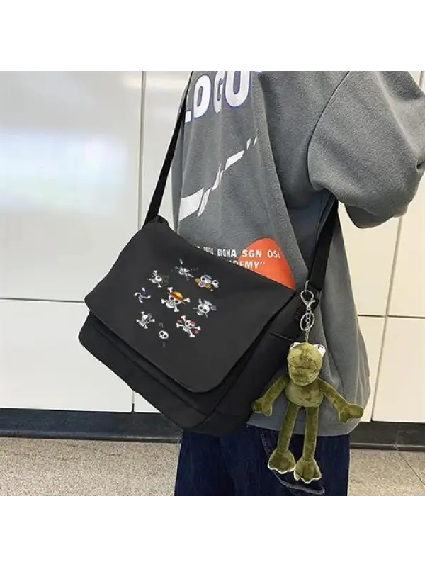 One Piece Characters Baskılı Unisex Siyah Postacı Çantası