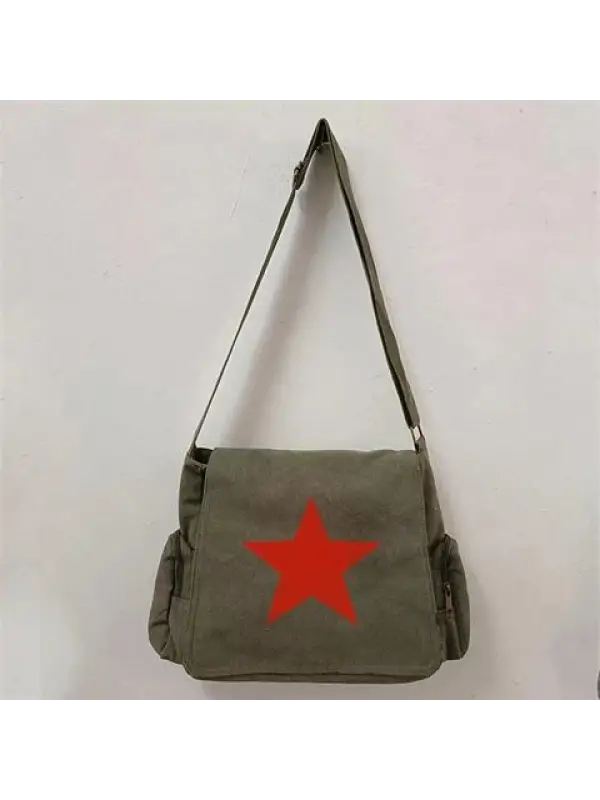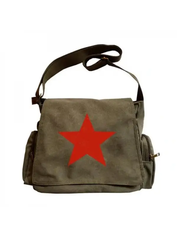 Red Star Baskılı Unisex Yeşil Postacı Çantası