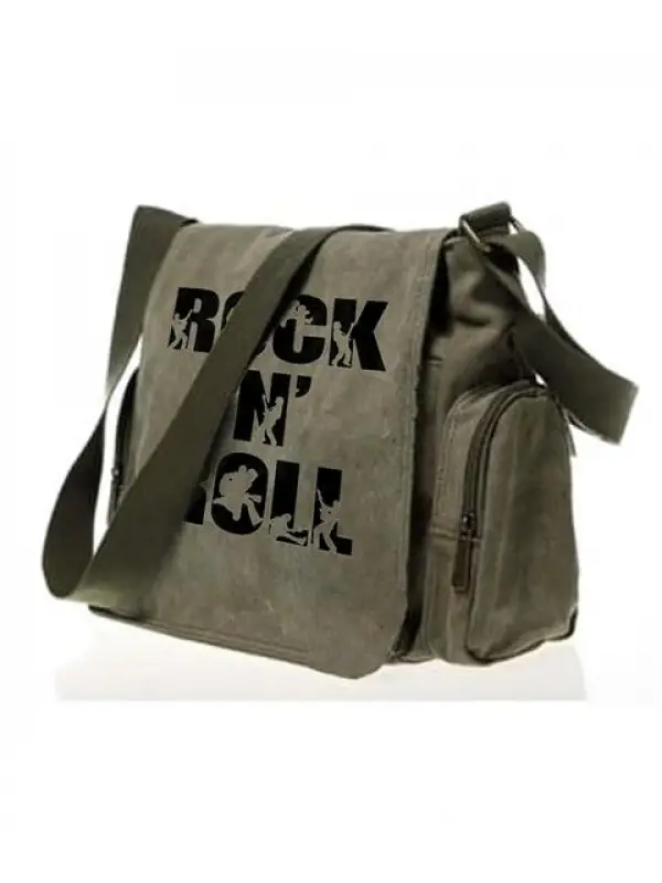 Rock N Roll Baskılı Unisex Yeşil Postacı Çantası