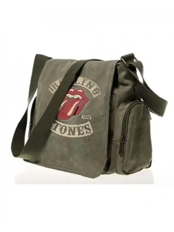 Rolling Stones Vintage Baskılı Unisex Yeşil Postacı Çantası
