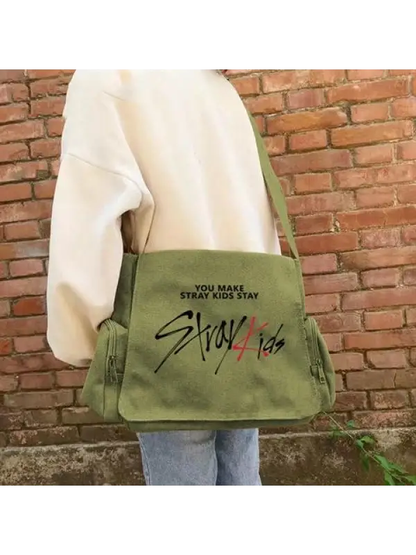 Stray Kids Baskılı Unisex Yeşil Postacı Çantası