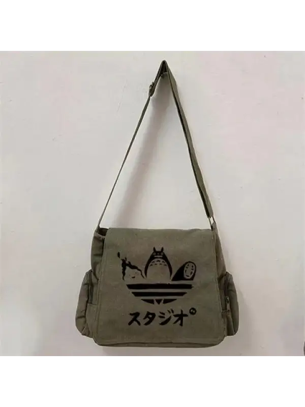 Totoro Baskılı Unisex Yeşil Postacı Çantası