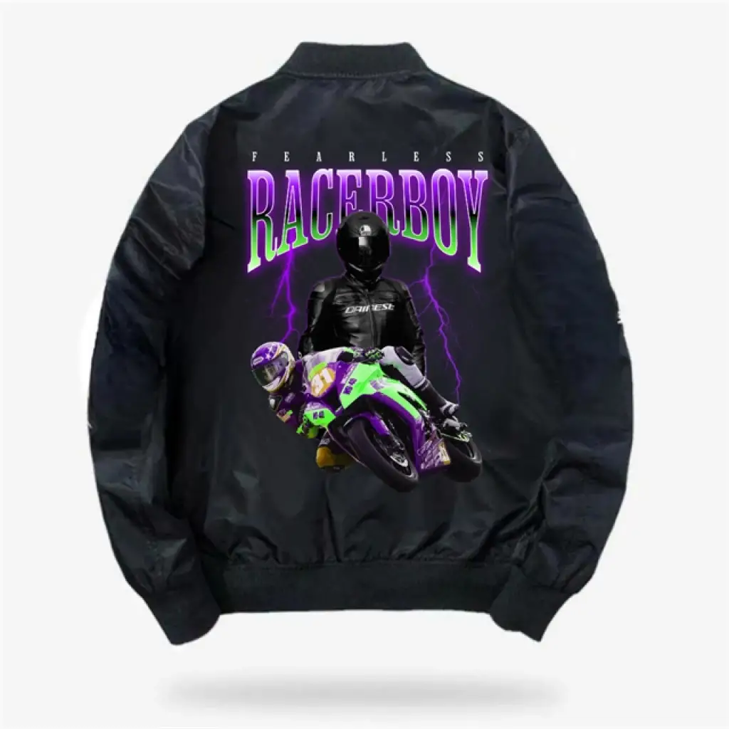 - Tasarım: Racer Boy Skeleton Baskılı Unisex Bomber Ceket ikonik tasarımıyla bezenmiş, sokak tarzı tutkunları için özel olarak hazırlanmıştır.
