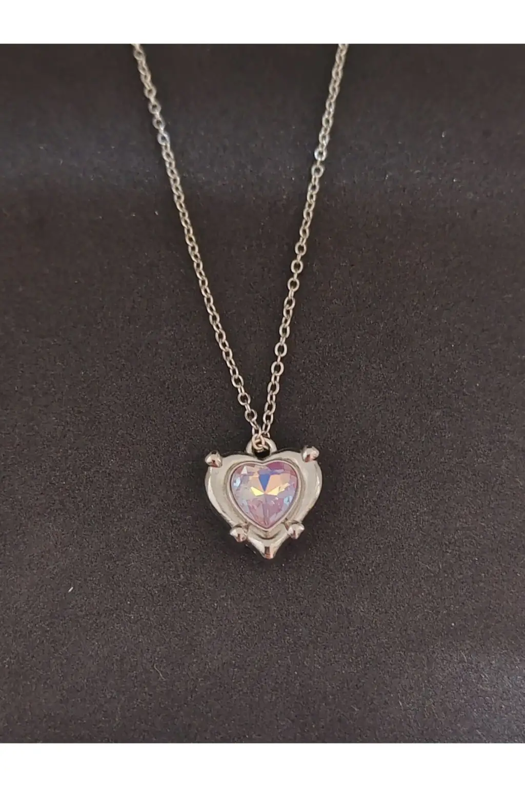 Retro Antik El Yapımı Kalp Şeklinde Amestist İşlemeli Özel Zincirli Kolye