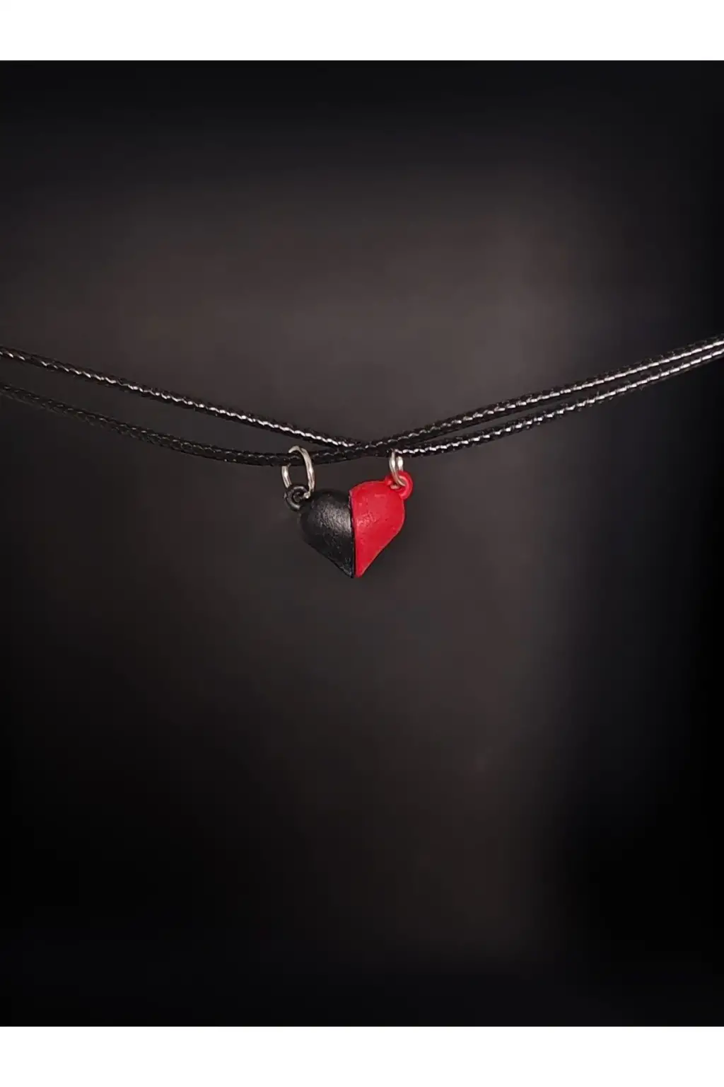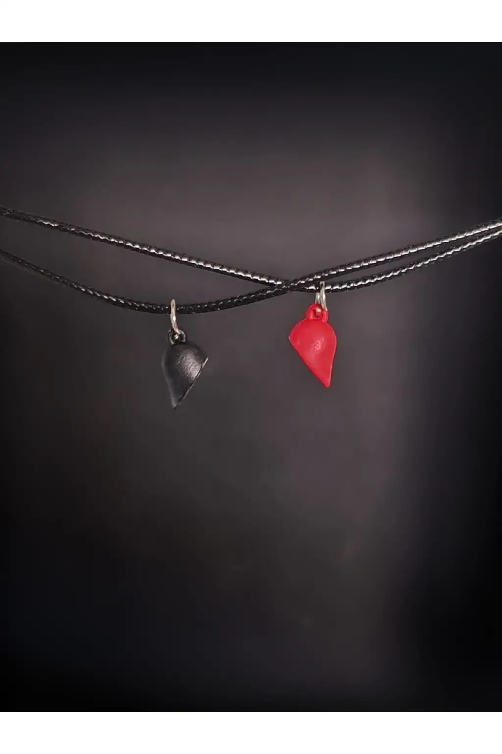 ESC BUTİK Retro Antik El Yapımı Kırmızı Kalp Şeklinde 2'li Mıknatıslı Özel Görünüm Sevgili Hediyelik Kolye, vintage tarzı sevenler için özel olarak tasarlanmıştır.