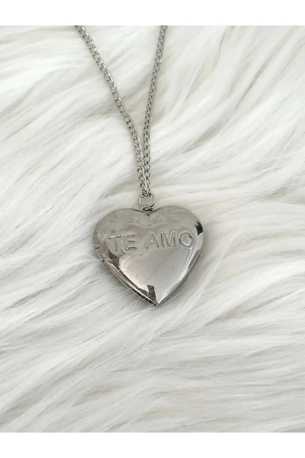 ESC BUTİK'in özel tasarımı olan Retro El Yapımı Te Amo Elmas Fotoğraf Koyulabilen Kapaklı Kalp Kolye, göz alıcı tasarımıyla dikkat çekiyor.
