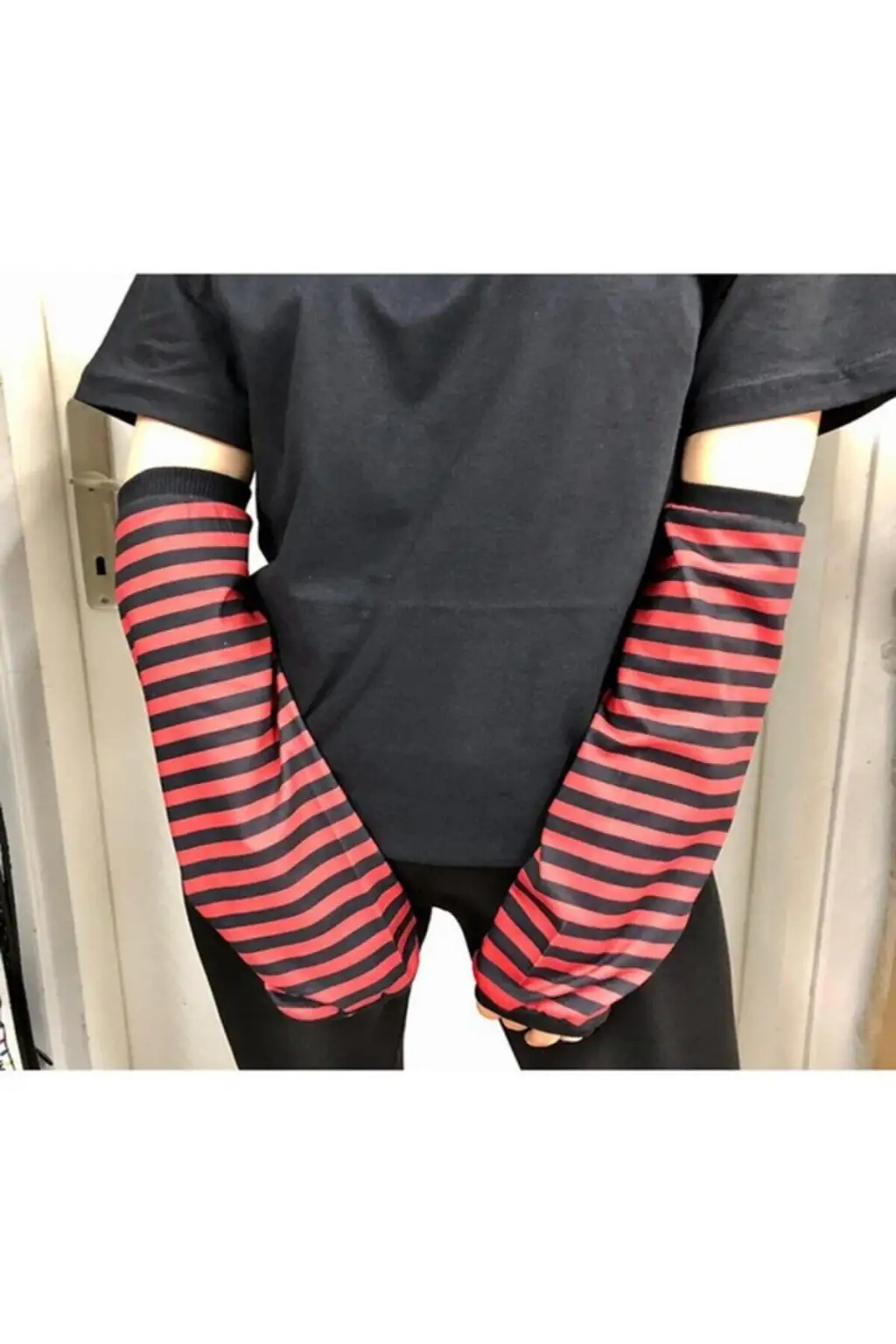 ESC BUTİK Retro Kesik Parmak Ikili Kırmızı Siyah Çizgili Kolluk, tarzınıza tarz katacak bir aksesuardır.