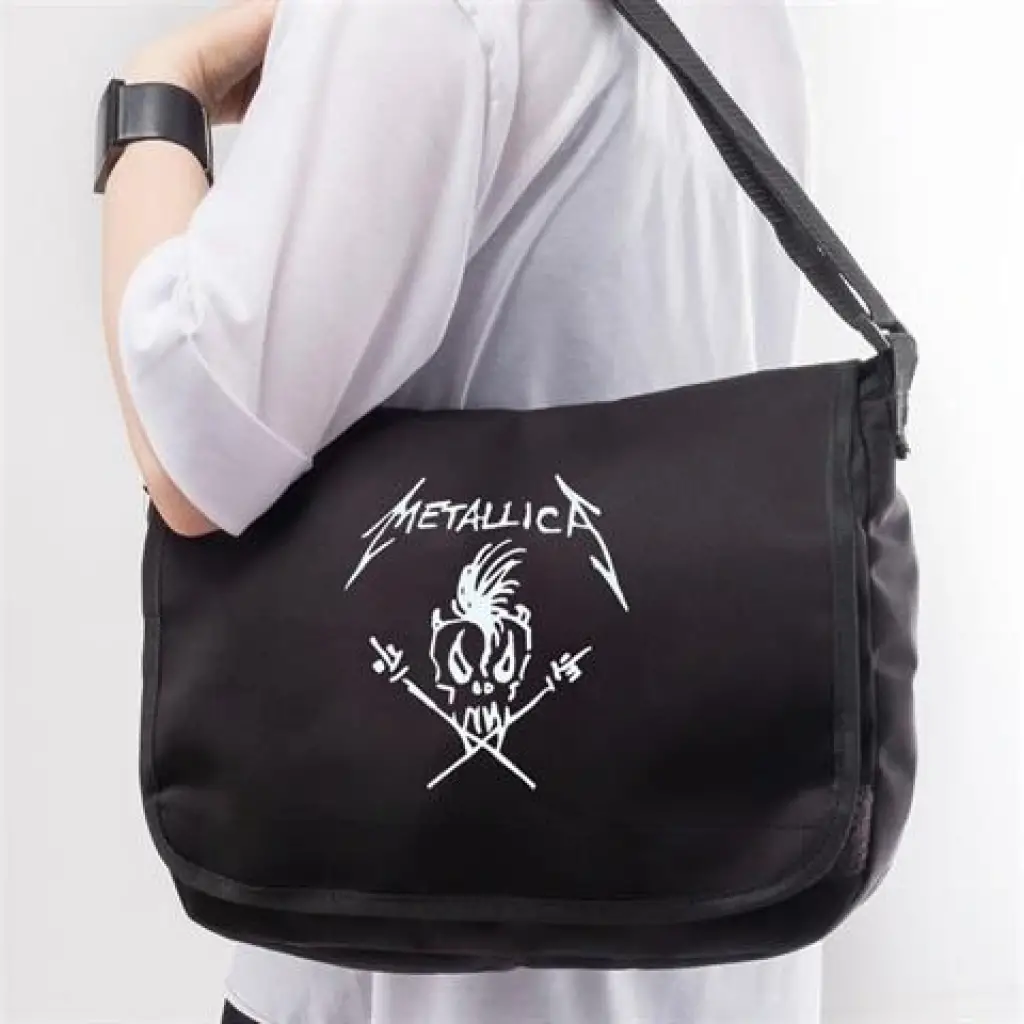 Rock Serisi - Metallica Skull Baskılı Unisex Siyah Postacı Çantası