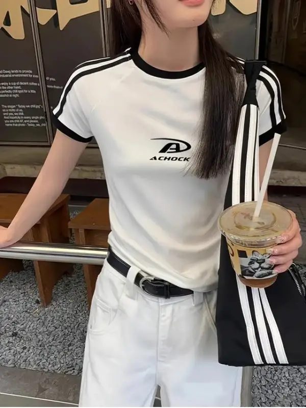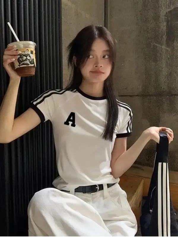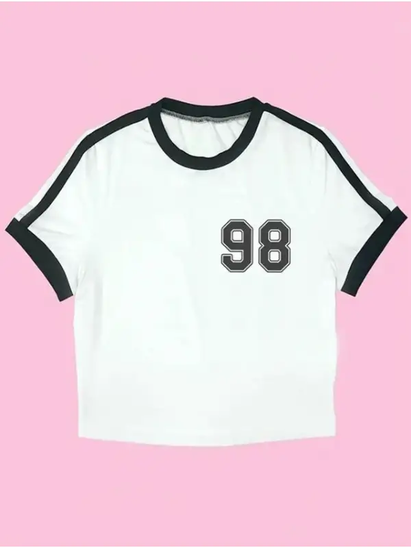 Toptan 98 Number Baskılı Şeritli Bluz Body Crop