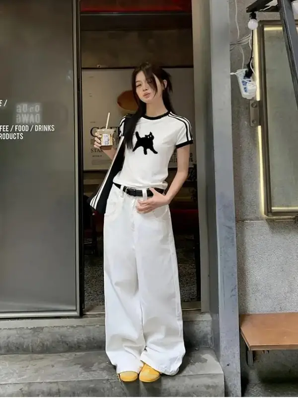 Toptan Cat Baskılı Şeritli Bluz Body Crop