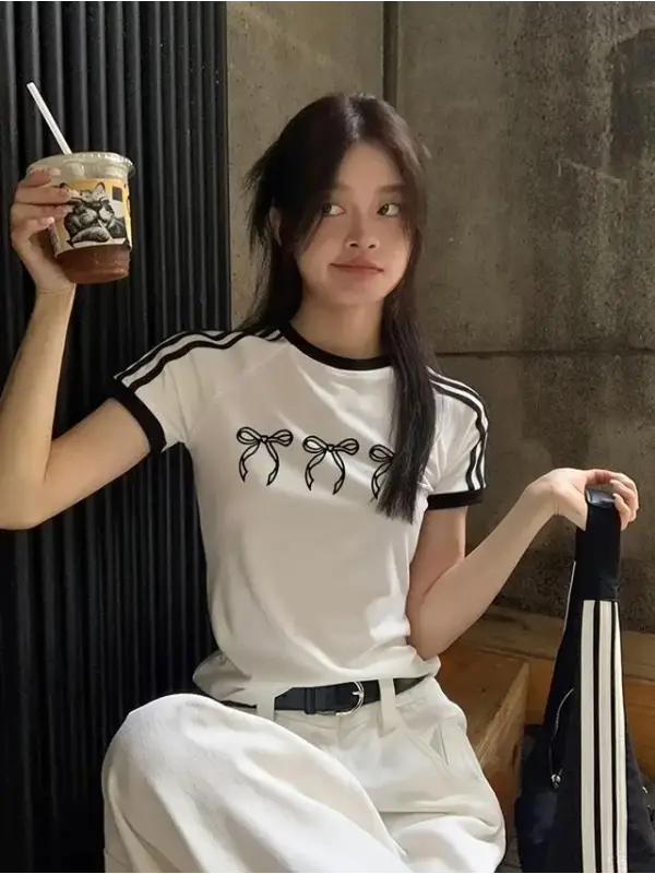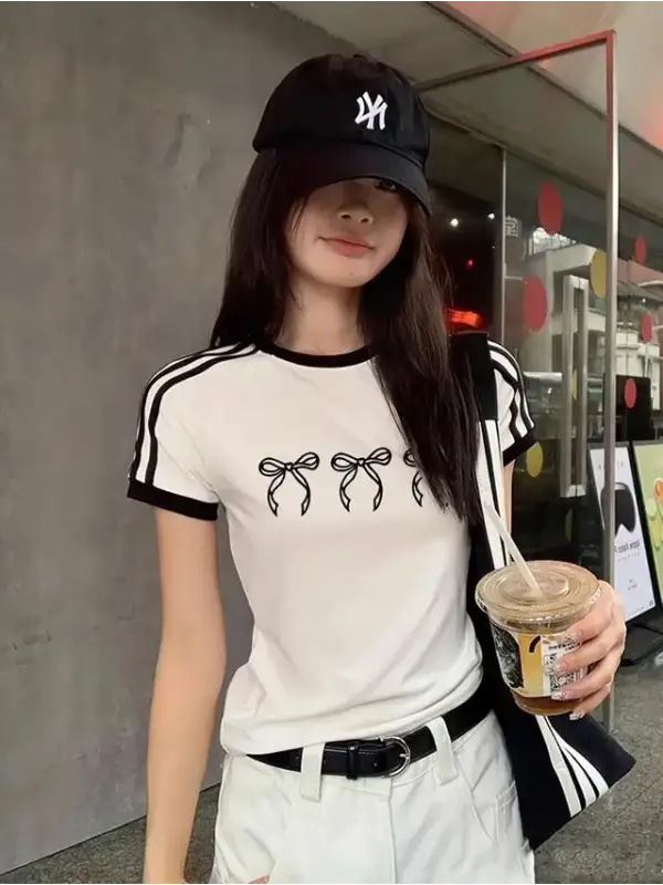 Toptan Ribbon Baskılı Şeritli Bluz Body Crop