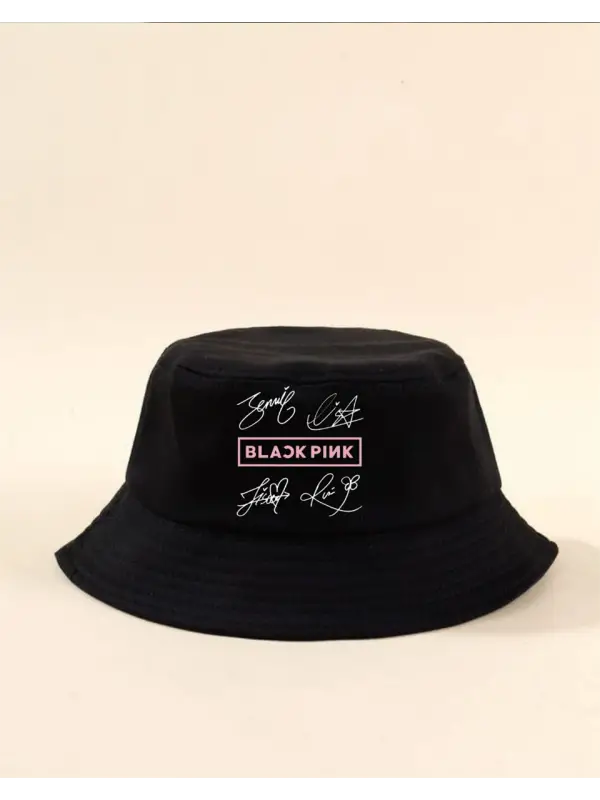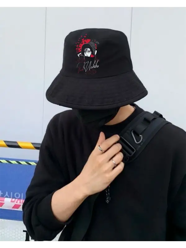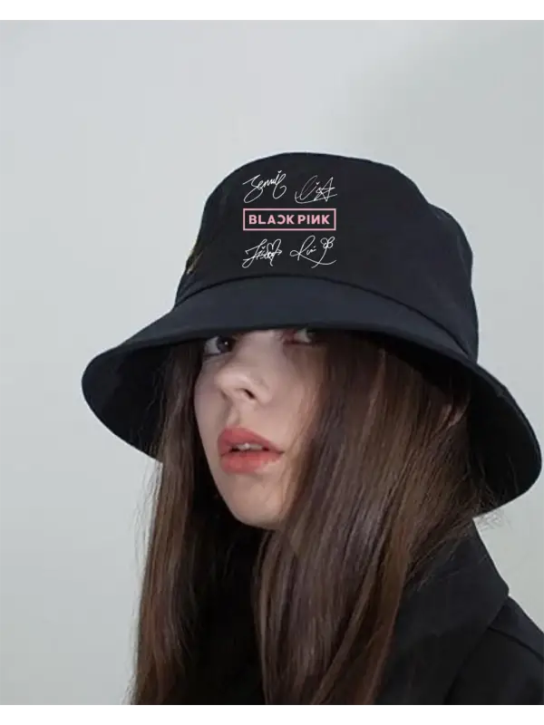 Siyah K-Pop Piercing Ve Çengelli İğne Modelli Bucket Şapka